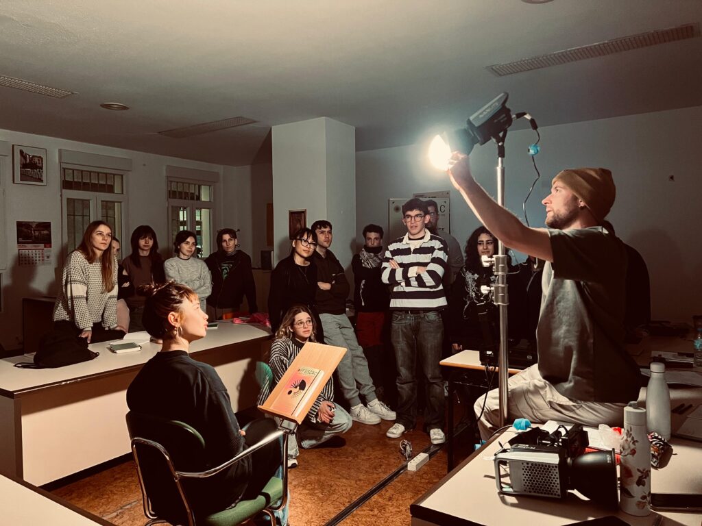 Jesús Esturillo, nuestro docente principal, técnico audiovisual especializado en dirección de fotografía con ocho años de trayectoria en la industria, especializado en el departamento de iluminación ha trabajado la luz desde su dimensión narrativa y expresiva. Con experiencia en publicidad, videoclips, largometrajes y documentales, ha participado en proyectos como ‘Segundo Premio’ (ganadora de tres Premios Goya), el videoclip ‘El Condenao’ de Lola Índigo y El Maka, la campaña ‘Andalusian Crush vol. 2’ o el largometraje ‘La Zona Vacía’, reconocido en el Festival de Málaga. Su enfoque ha permitido entender cómo la luz construye significado dentro del encuadre y como llevarla a cabo en su complejidad.