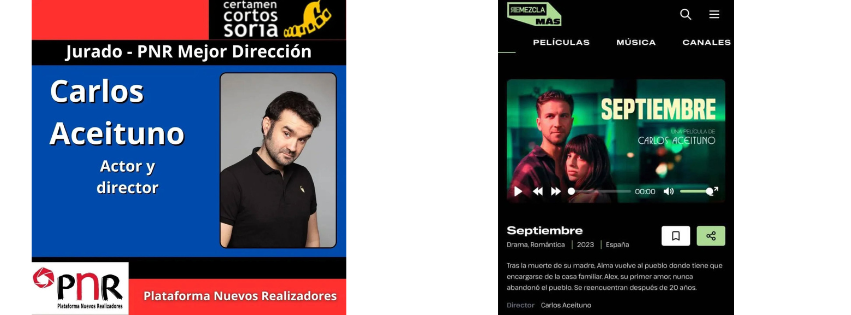 Carlos Aceituno formó parte del jurado del Premio a Mejor Dirección en la XXVII Edición del Festival Internacional de Certamen Internacional de Cortos Ciudad de Soria. Asimismo, el largometraje “Septiembre” dirigido por nuestro socio, amplió su distribución internacional al incorporarse al catálogo de Remezcla Más (México).