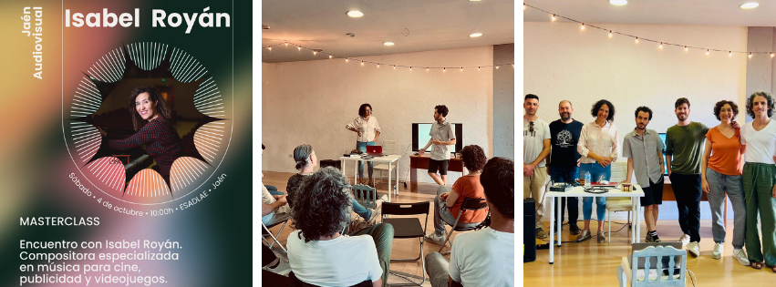 El 4 de octubre arrancamos el otoño con una magnífica masterclass de Isabel Royán, compositora especializada en música para cine, publicidad y videojuegos, celebrada en ESADLAE, escuela dirigida por Manuel Sutil. La sesión reunió a numerosos socios, socias y estudiantes, que pudieron conocer de primera mano los procesos creativos de una de las compositoras más destacadas del panorama audiovisual.